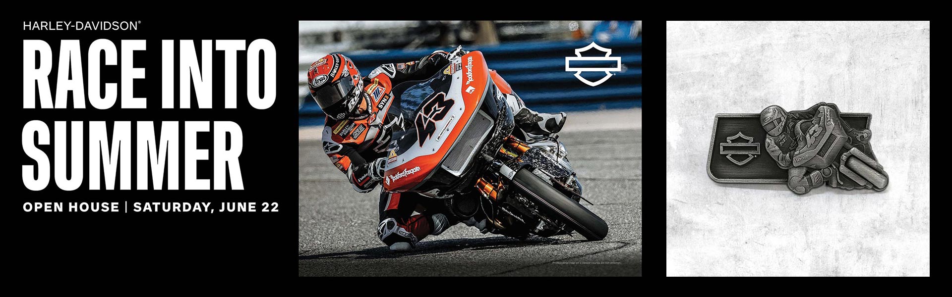 Racing has been part of the Harley-Davidson experience since the very beginning. From the Hillclimbers to the flat trackers to today's King of the Baggers™ led by our H-D® Factory Racing team. Join us to honor our roots with the Race Into Summer Open House on Saturday, June 22. Summer has arrived. It's time to roll.